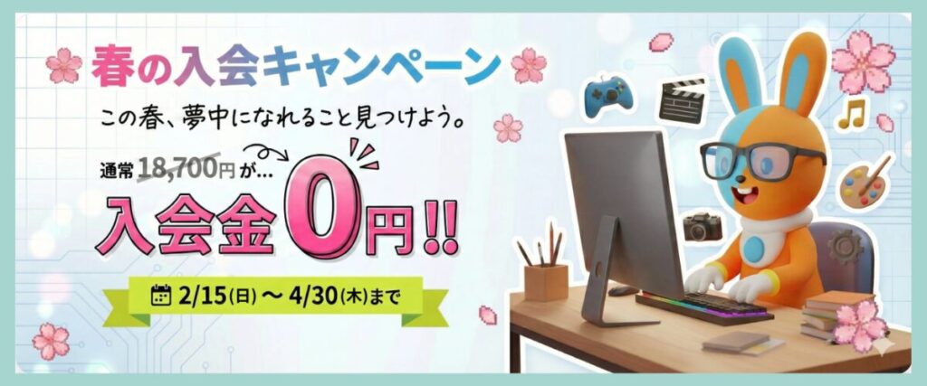 ITeens Labでは2026年2月15日(日)〜4月30日(木)の期間、入会金18,700円(税込)が0円になる「春の入会キャンペーン」を実施しています。