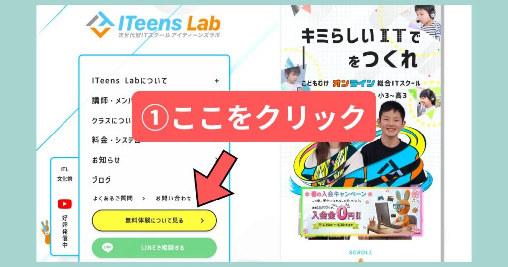 - こちらからITeens Lab公式サイトに飛ぶ。